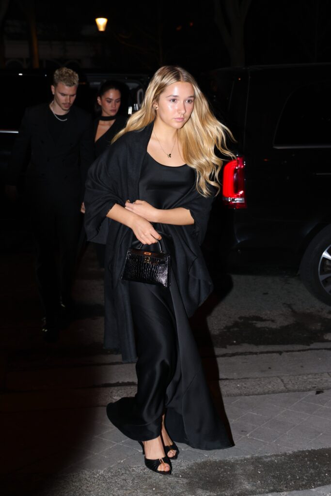 Najmlađa ćerka, Harper Seven, uskladila se sa majkom u crnoj haljini i odgovarajućim aksesoarima: šalu, cipelama sa otvorenim prstima i mikrotorbicom. Romeova devojka, Kim Turnbull, takođe je nosila crnu haljinu, stojeći pored svekrve, dok je Romeo bio u potpunosti u crnoj kombinaciji, usklađen sa njom.