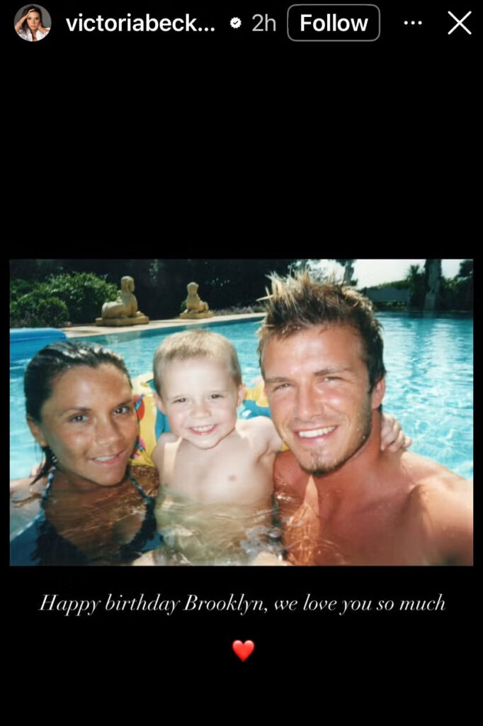 David i Victoria Beckham prekinuli su ćutanje usred, kako se svi možemo složiti, veoma intenzivne porodične svađe i uputili javnu poruku svom sinu, Brooklynu Beckhamu. Par se oglasio na svojim Instagram nalozima povodom njegovog rođendana, uz poruke „volimo te“ i „mnogo te volimo“, koje su napisali uz više zajedničkih fotografija.