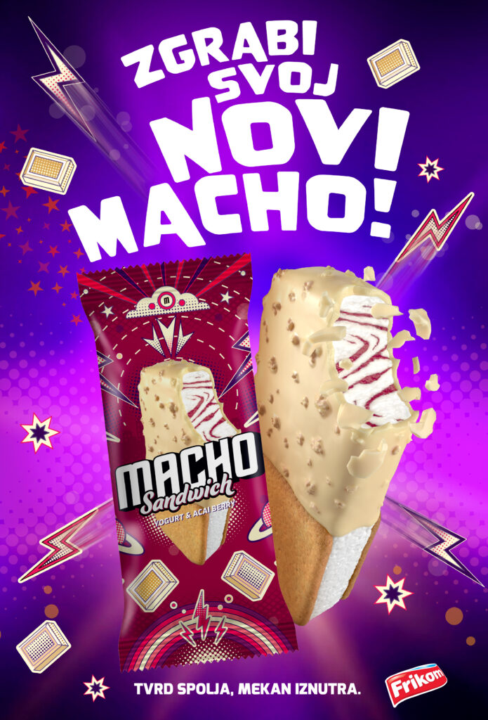 Brend Macho ove sezone uvodi dva noviteta kojima proširuje izbor za sve ljubitelje kreativnih sladolednih kombinacija. U ponudu stiže Macho Sandwich Yogurt & Acai Berry, dok je popularni Banana Crunch od sada dostupan u većem izdanju.