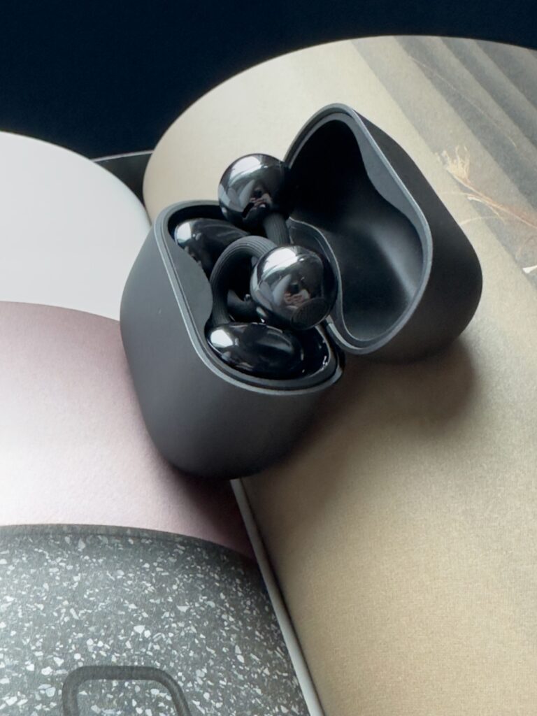 Dok koračamo gradom prema kancelariji, omiljena muzika ili podkast lagano prati naš ritam. Open-ear dizajn znači da i dalje čujemo saobraćaj, razgovore ili zvuke ulice, bez prekidanja uživanja u zvuku. Mekani, lagani Airy C-bridge čini da slušalice skoro i ne osetimo, ali prava čar leži u njihovoj estetici: na uvu izgledaju kao elegantna minđuša, toliko upečatljiva da svaki drugi komad nakita postaje suvišan.