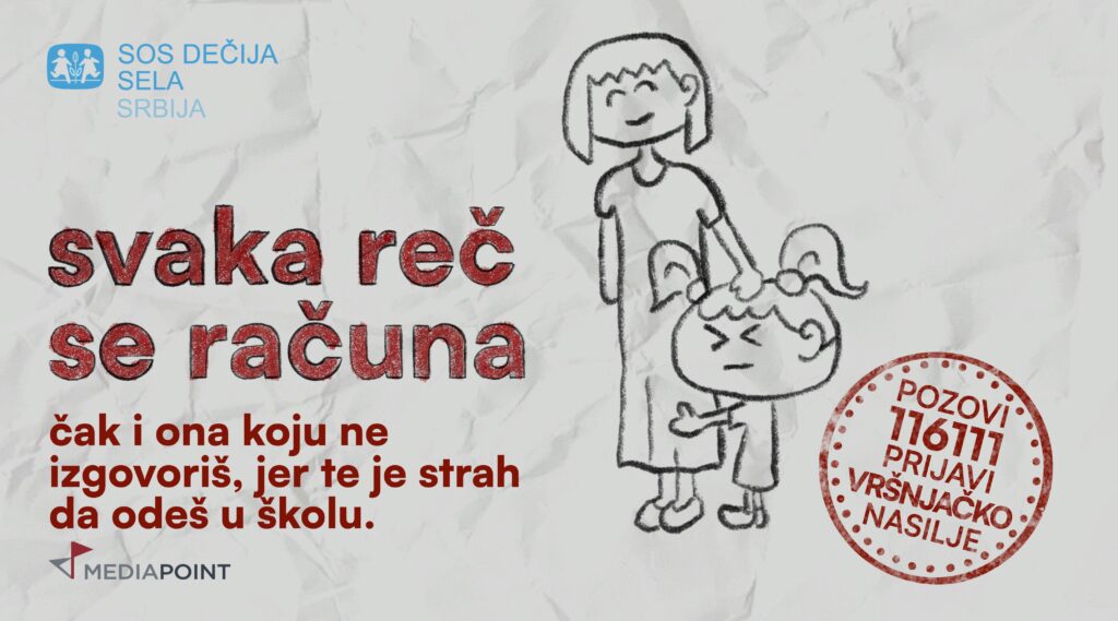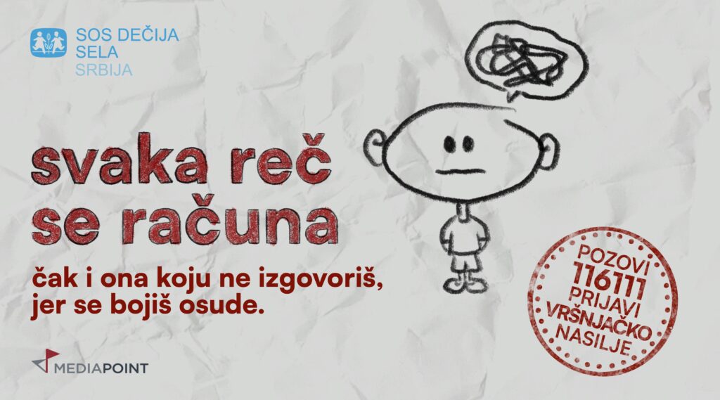 SOS Dečija sela Srbija pokreću kampanju „Svaka reč se računa”, sa ciljem podizanja svesti o značaju prevencije i sprečavanja vršnjačkog nasilja, njegovim često nevidljivim oblicima i važnosti prepoznavanja tišine kao jednog od ključnih signala da deca trpe nasilje i da im je potrebna podrška.