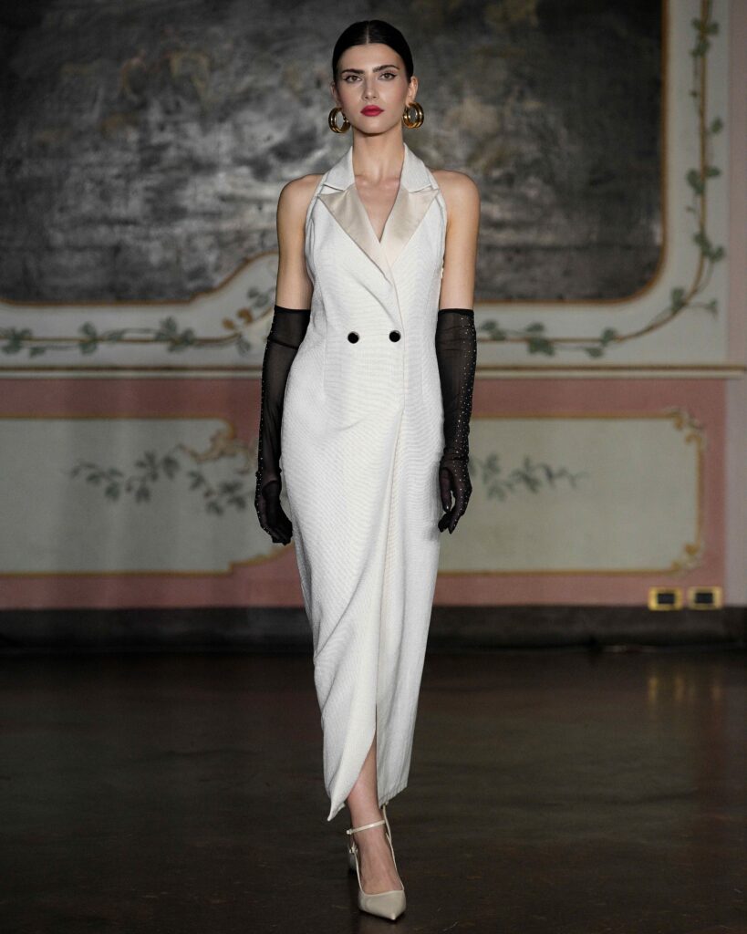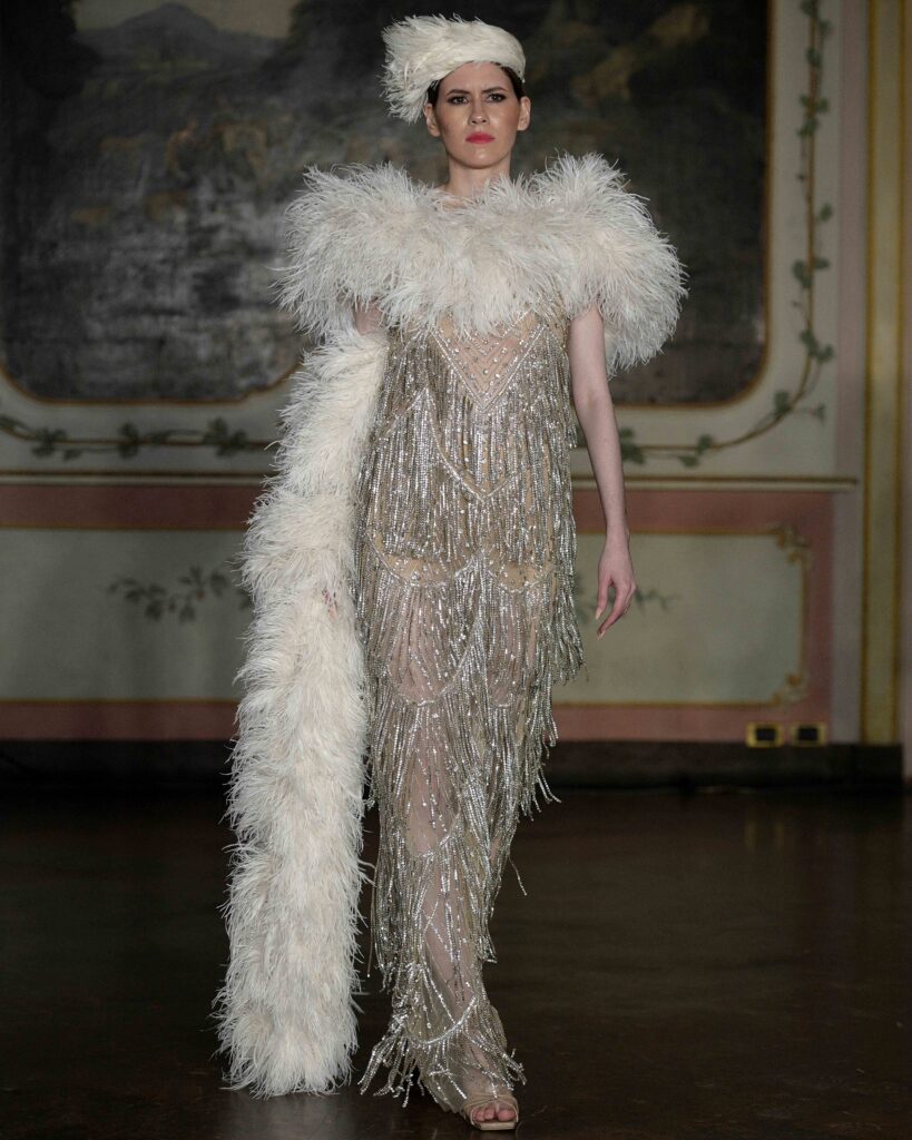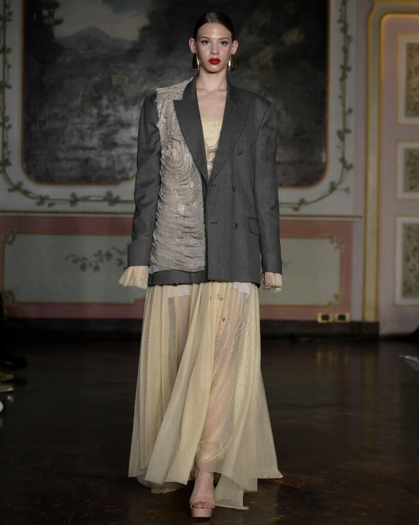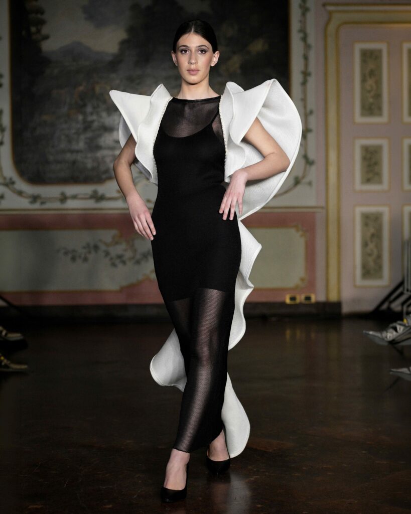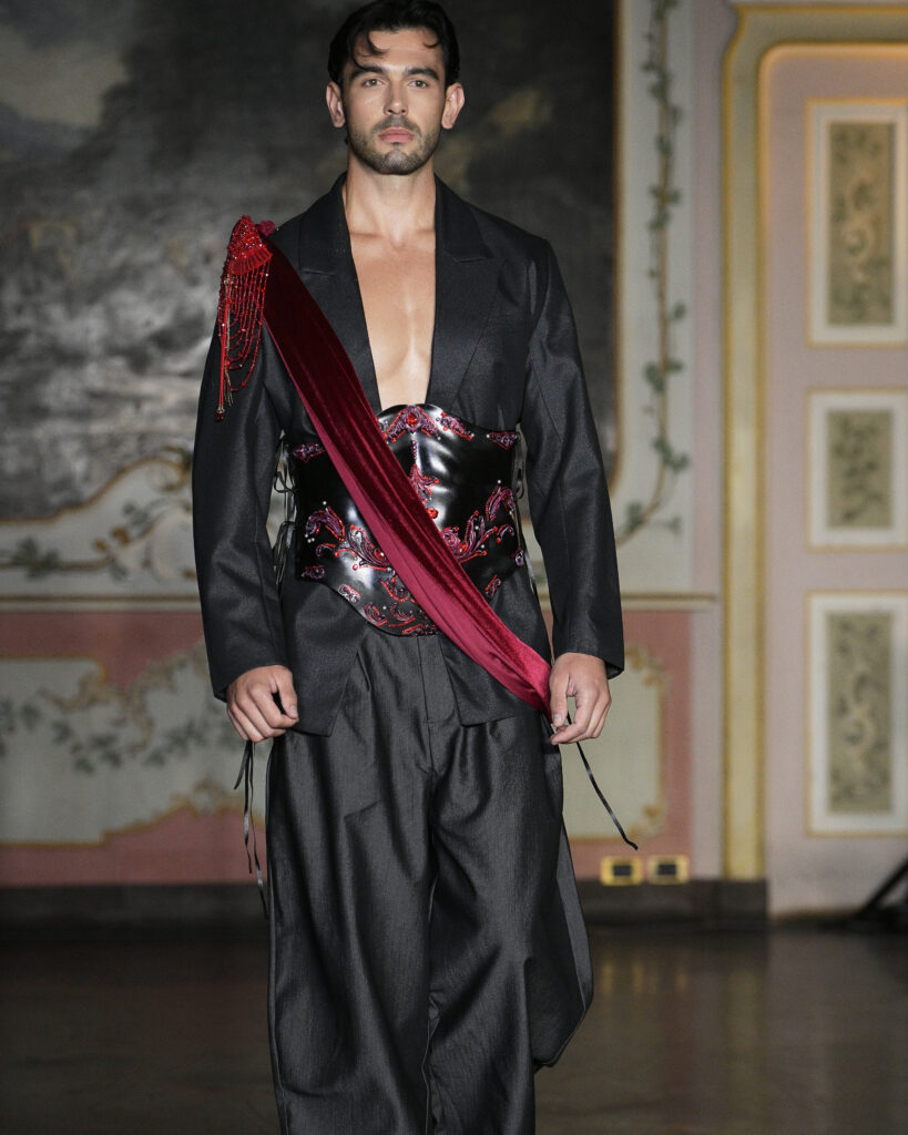 Anton Giulio Grande doneo je na Milan Fashion Days autoritet italijanske visoke mode, predstavljajući viziju u kojoj senzualnost, zanatsko majstorstvo i snažan osećaj ličnosti definišu savremenu eleganciju. Poznat po potpuno ručno izrađenim kreacijama nastalim u tradicionalnim ateljeima gde vreme zamenjuje mašine, on nastavlja da slavi ženu čije prisustvo prevazilazi konvencionalne standarde lepote — ženu koja se pamti po svom karakteru i harizmi.