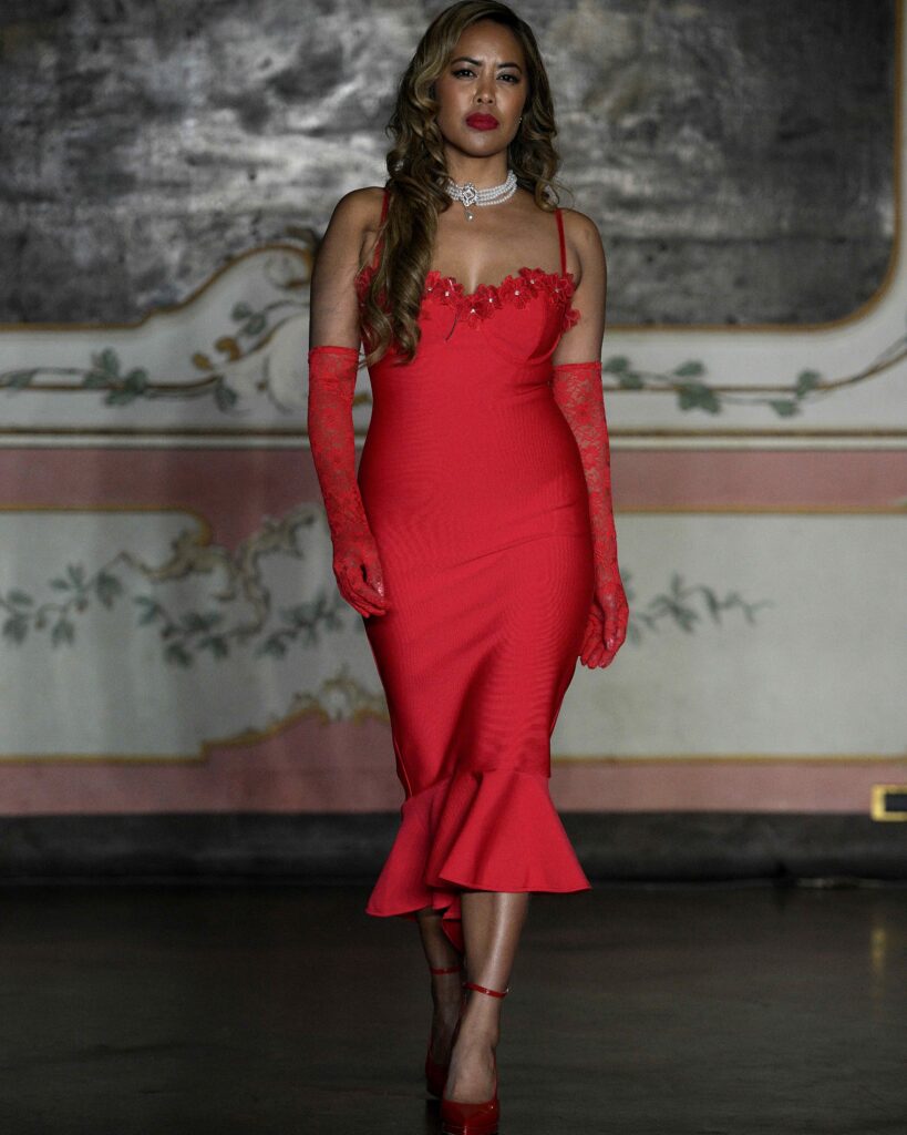 House of Rina unveiled Le Donne Di Rosso, a tribute to women everywhere — honoring their courage, resilience, and transformative power. More than a presentation of garments, the show unfolded as an emotional journey, capturing the layered nature of modern womanhood, where softness and strength exist in perfect harmony. A deliberate dialogue between shadow and fire defined the palette: deep black lace, chiffon, satin, and velvet spoke of untold stories and inner fortitude shaped by experience, while silhouettes in defiant red charmeuse, organza, georgette, and fluid silk emerged as a collective voice of visibility and solidarity. The red pulsed with life and purpose, symbolizing courage and the unbreakable bond between women who rise together. Subtle crystal and pearl embellishments highlighted the precision of couture craftsmanship, as the contrast between structured velvet and weightless chiffon mirrored vulnerability and power coexisting within a single, commanding vision.