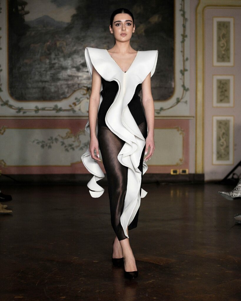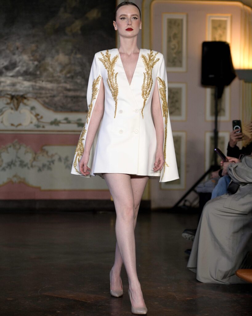 AKEL Couture presented the collectionDOMINION – The Sovereignty of Style, a powerful couture narrative dedicated to strength, authority, and modern femininity. Founded by Zoriana Semeniuk in Ukraine and now based in Berlin, the house showcased architectural silhouettes, sculpted corsetry, sharp tailoring, and fluid yet commanding lines that created a sophisticated dialogue between power and sensuality. Rich textures and meticulous craftsmanship transformed each look into a statement of contemporary couture. Guided by its signature philosophy, “Shining is our DNA,” AKEL Couture once again affirmed its global presence and its vision of fashion as an expression of sovereignty, individuality, and radiant elegance.