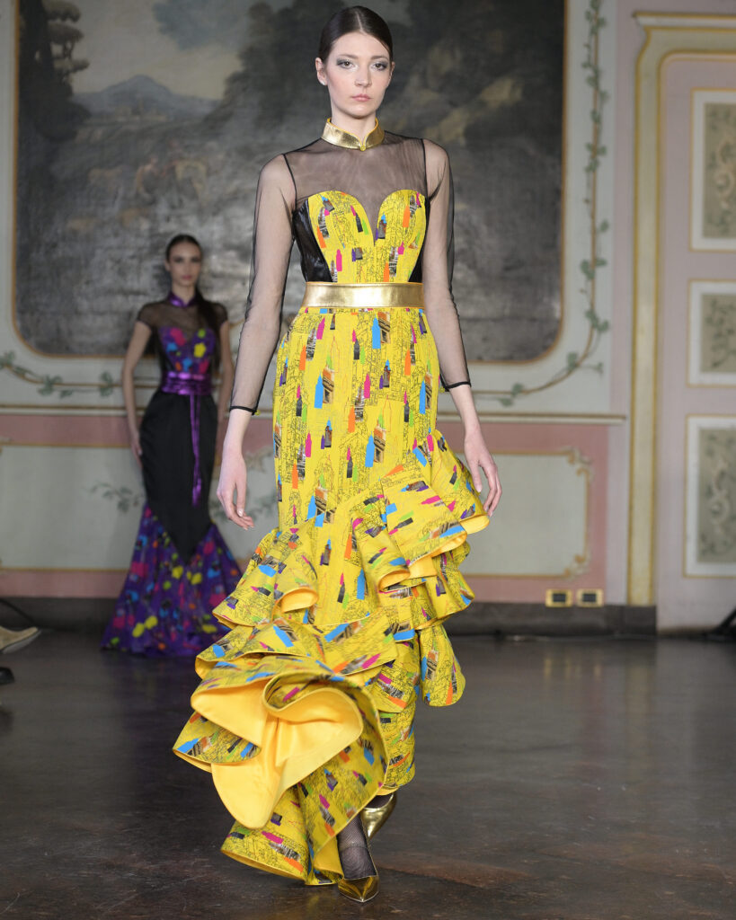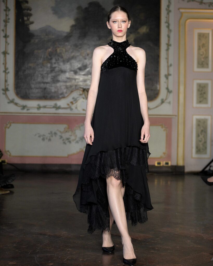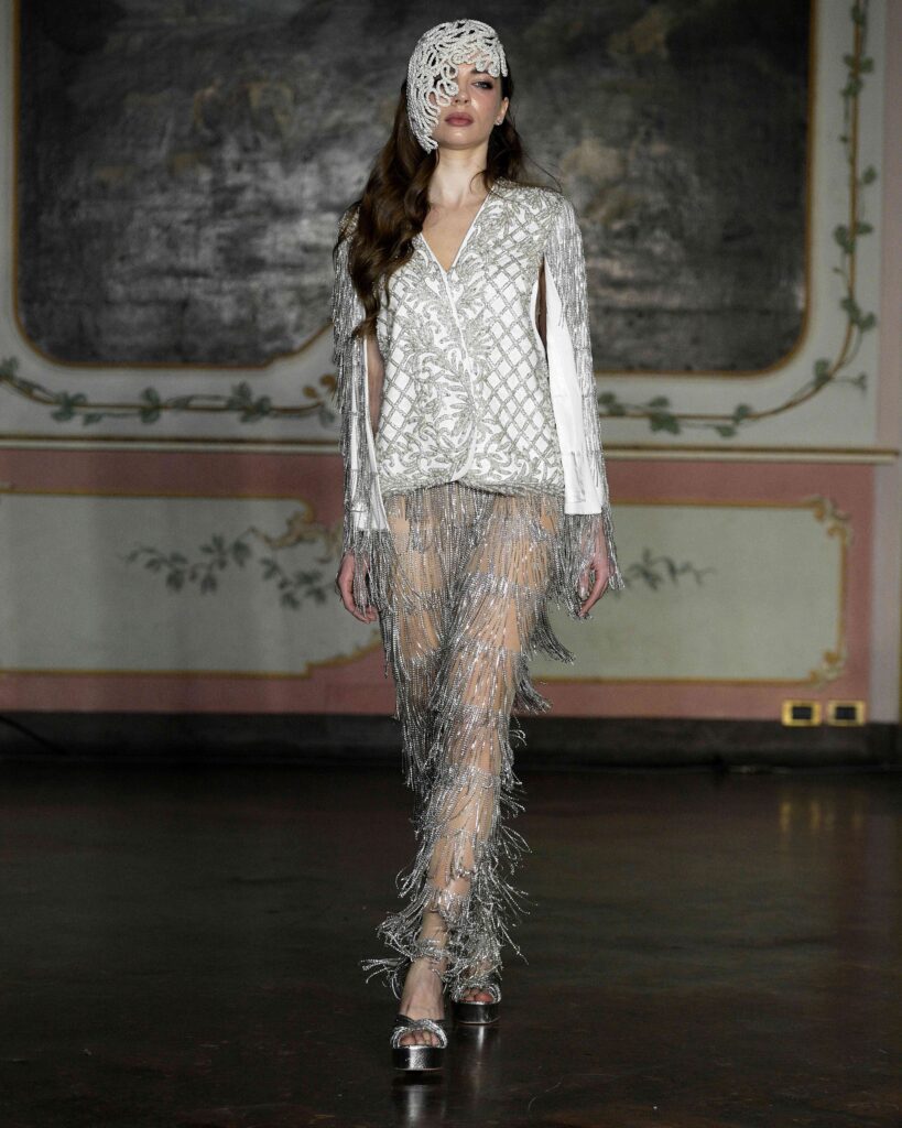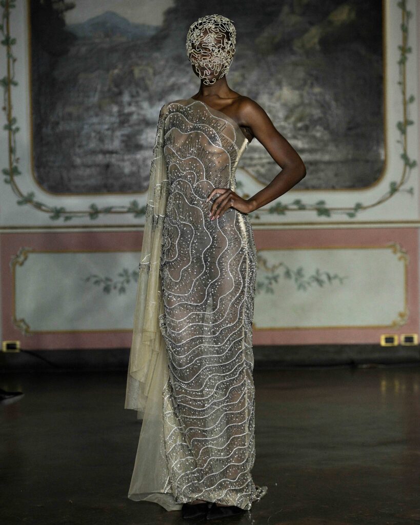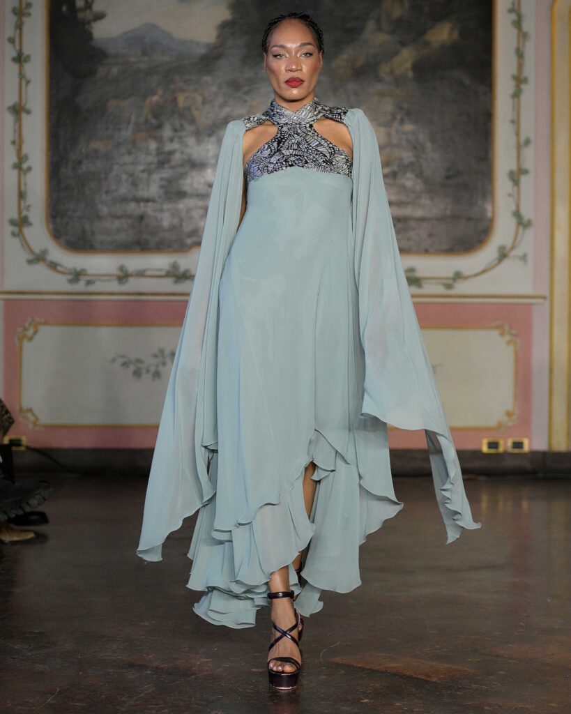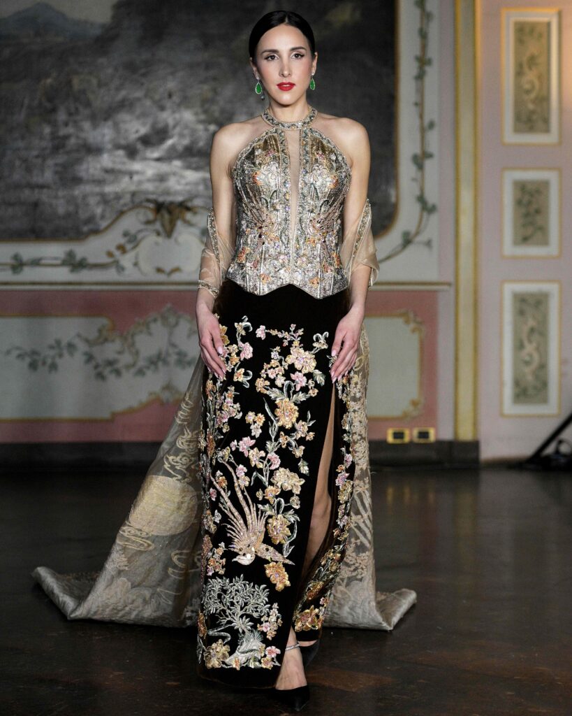 Anton Giulio Grande brought to Milan Fashion Days the authority of Italian haute couture, unveiling a vision where sensuality, artisanal savoir-faire, and a powerful sense of personality define modern elegance. Renowned for his entirely handmade creations developed in traditional ateliers where time replaces machinery, he continues to celebrate a woman whose presence transcends conventional beauty — one remembered for her character and allure.