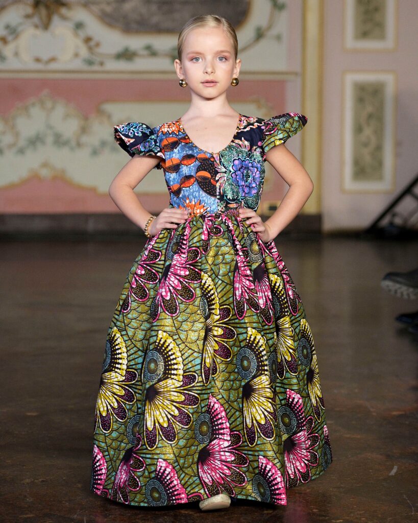 Enhle Babes Couture brought a radiant celebration of African heritage to the runway, presenting a collection that translated royalty into joyful couture for a new generation. Founded in South Africa by prodigious designer Enhle at just ten years old, the brand infused Milan with vibrant colour, rich cultural prints, and a spirit of unapologetic optimism. Silhouettes designed for children and teens carried the confidence of ceremonial dress, where sparkle, texture, and bold patterning became symbols of identity and pride.