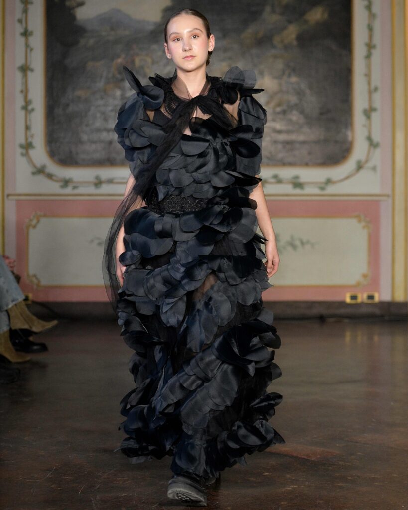 Enhle Babes Couture doneo je na pistu blistavu proslavu afričkog nasleđa, predstavljajući kolekciju koja je kraljevsku estetiku pretvorila u radosni couture za novu generaciju. Brend je u Južnoj Africi osnovala izuzetno talentovana dizajnerka Enhle sa samo deset godina, a u Milanu je predstavio živopisne boje, bogate kulturne printove i duh nesputanog optimizma. Siluete namenjene deci i tinejdžerima nosile su samopouzdanje ceremonijalne odeće, gde su sjaj, tekstura i smeli uzorci postali simboli identiteta i ponosa.