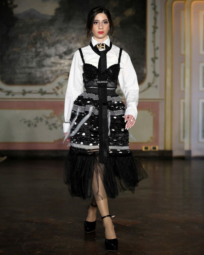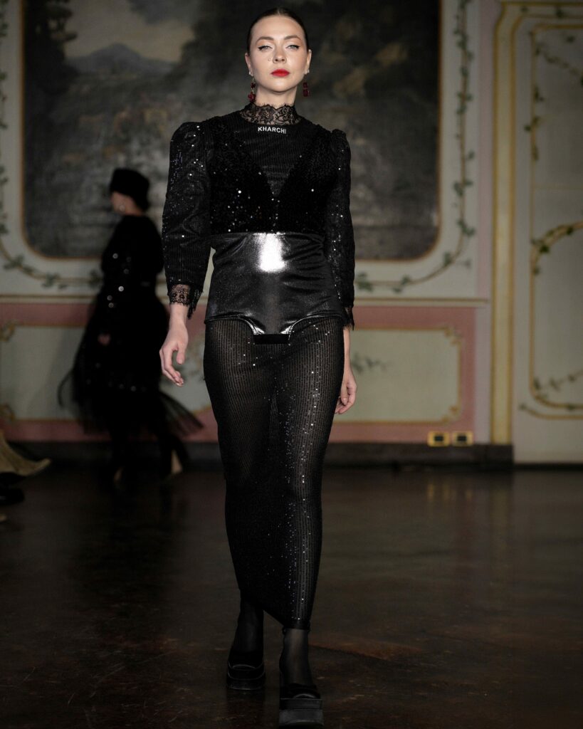KHARCHI je predstavio kolekciju Space Between Us, koja modi pristupa kao meditaciji o vremenu, identitetu i ljudskoj povezanosti. Ovu nezavisnu modnu kuću osnovala je gruzijska dizajnerka Sofia Kharchilava, a pista je pretvorena u tihi, ali snažan dijalog u kojem su se žene različitih generacija pojavile ne kao kontrast, već kao kontinuitet — živa vremenska linija iskustva i želje. Ukorenjene u kulturnoj simbolici regiona Samegrelo i oblikovane filozofijom sporog, ručnog stvaranja, siluete su istraživale teksturu, pokret i poeziju prostora kao emotivne sile. Ovde je distanca postala jedinstvo, godine su izgubile svoju moć, a elegancija je postojala izvan definicije.