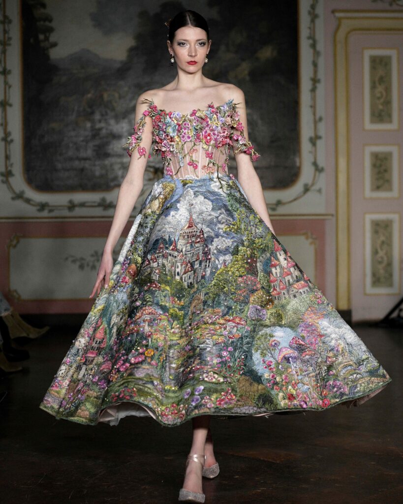 by Vel predstavio je novo poglavlje svoje prepoznatljive linije Secret Garden: Alice Through the Looking Glass, kolekcije koja je pistu pretvorila u sanoliki pejzaž sećanja, refleksije i unutrašnje slobode. Brend su u Ukrajini osnovale dve sestre i nastavlja da istražuje emotivni jezik detinjstva kroz izrazito savremenu prizmu, gde su prozračne, fluidne haljine, skulpturalni volumeni i nežno reinterpretirane arhivske boje kretali pistom sa gotovo bestežinskom lakoćom.