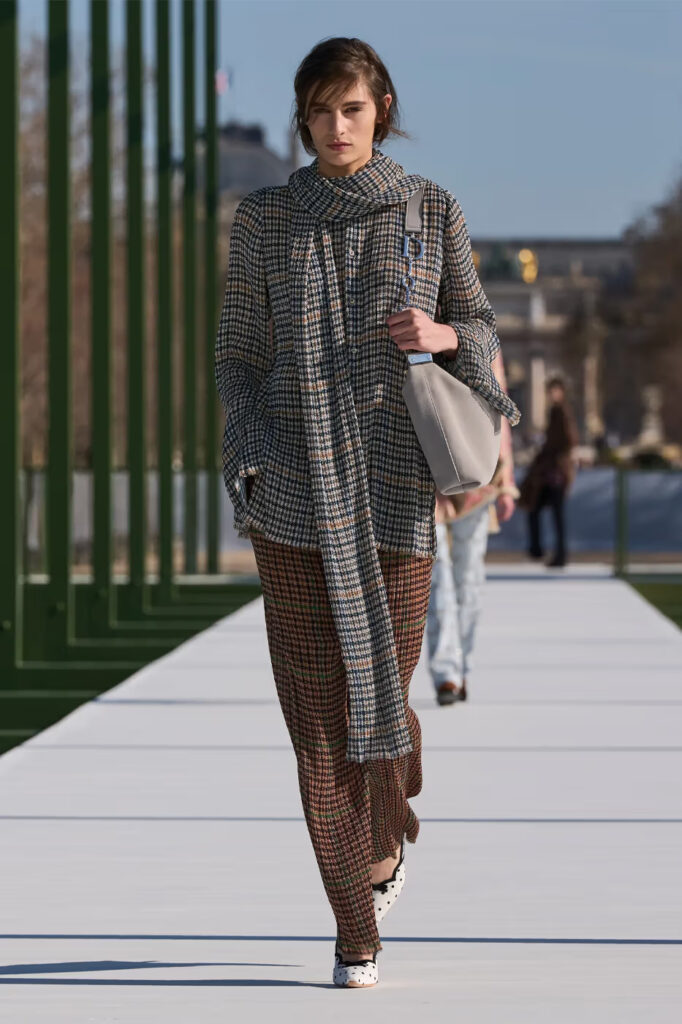 Uticaj impresionizma ogledao se i u iridescentnim pastelima koji su se prelivali po tkaninama kao da su prelomljeni kroz vodu. Čak su i jednostavni komadi nosili dozu fantazije: svetlucave, izvezene farmerke, pero koje lebdi preko kaputa, sivi kostim sa diskretnim sjajem, trenerka sa maštovitim dezenom. Ponekad je inspiracija bila direktnija — cvetovi aplicirani na haljinama, zelene potpetice sa motivom lokvanja ili modeli koji podsećaju na rascvetale pupoljke.