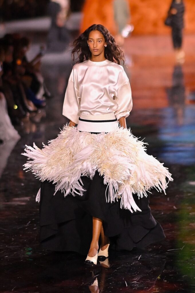 Dok su oni sedeli u prvom redu, Matthieu Blazy na pisti je predstavio svoju prvu Chanel kolekciju: spoj muških osnova poput košulje i pantalona sa ženstvenom lakoćom koju je nekada nosila sama Gabrielle Chanel. Androgina energija pretvarala se u tvid, svilene krojeve i raskošne suknje, dok su kamelija, perle i lančići podsećali na neprolazne kodove kuće.