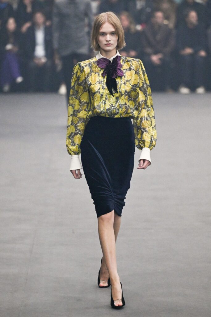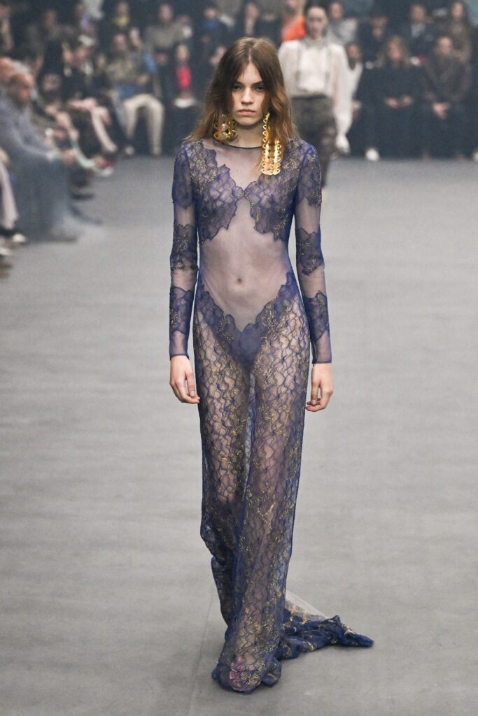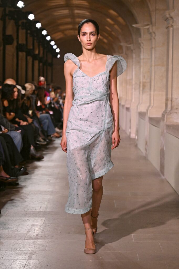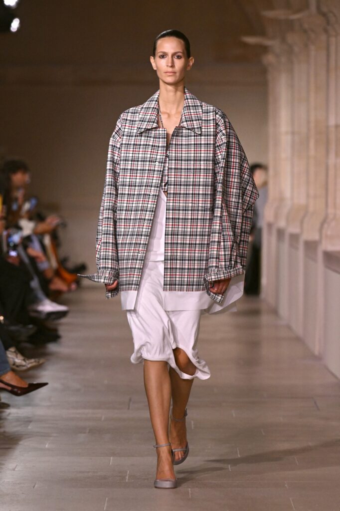 Sarah Burton za Givenchy je otvorila kolekciju proleće/leto 2026. strukturiranom mini haljinom od crnog satena sa srcastim dekolteom. Kolekcija je preispitivala arhetipove ženstvenosti kroz balans između onoga što je prisutno i onoga što je odsutno – klasični komadi poput belih košulja i kaki trencha kombinovani su sa izrezanim brushalterima, mrežama i bodijima koji funkcionišu kao kompletni autfiti. Burton se poigravala kontrastom crne i bele, dok su dodaci i manipulisane siluete naglašavali eleganciju i slobodu pokreta. Kolekcija pokazuje da ženstvenost može biti i nežna i moćna, spoj tradicije i suvremene sofisticiranosti.